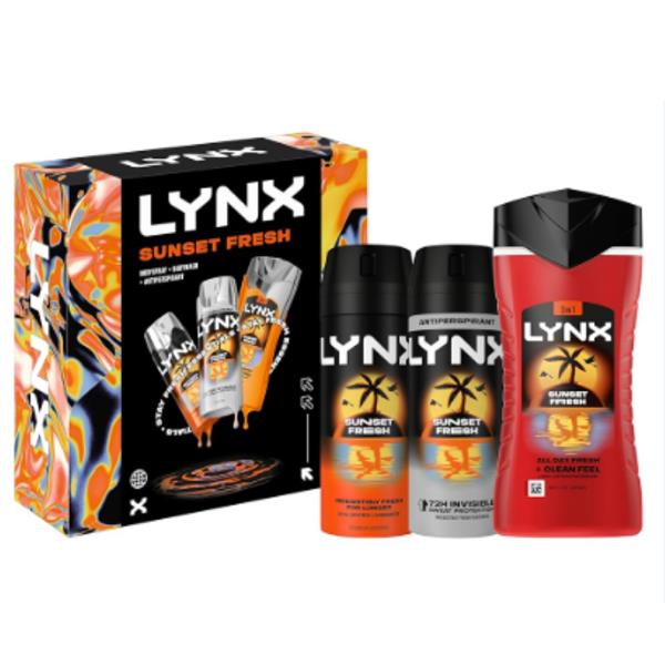 • LYNX Sunset Fresh Trio Gift Set includes a LYNX Sunset Fresh body spray, body wash, and antiperspirant